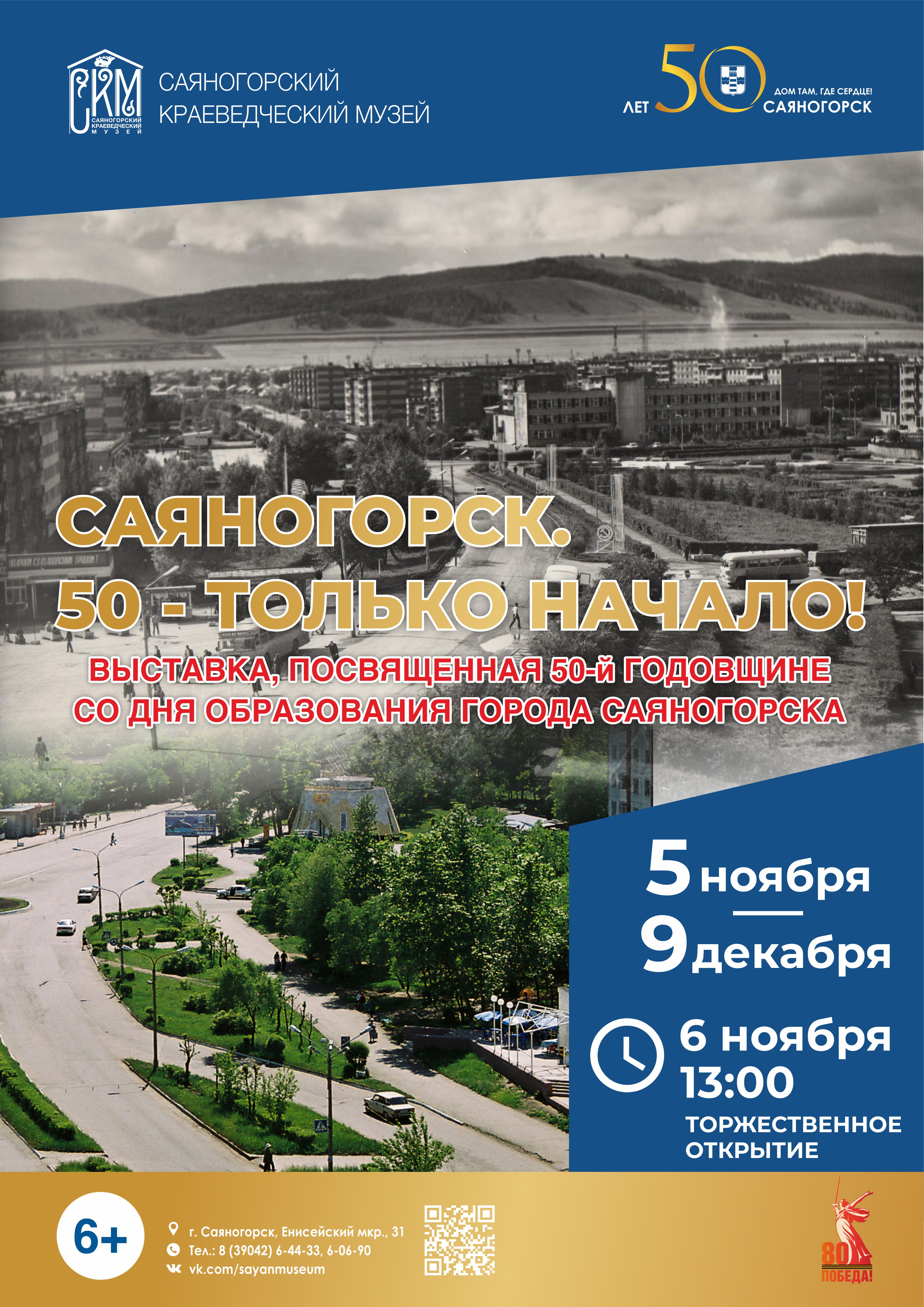 Дорогие друзья, в Краеведческом музее продолжает свою работу выставка "САЯНОГОРСК. 50 -ТОЛЬКО НАЧАЛО!" На выставке представлены предметы из фондов Саяногорского Краеведческого музея, а так же картины саяногорских художников. Ждем вас в будние дни с 8:00 до 17:00 Выставка продолжит работу до 9 декабря
