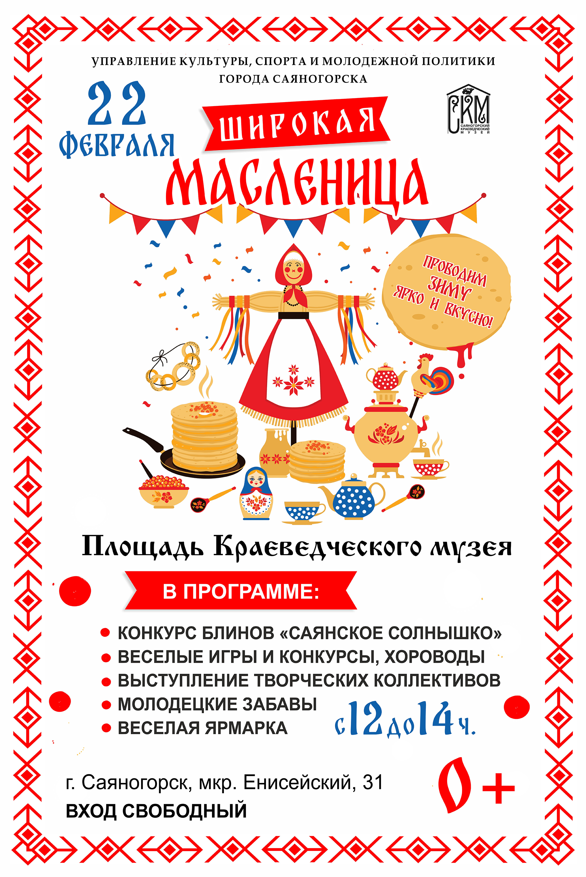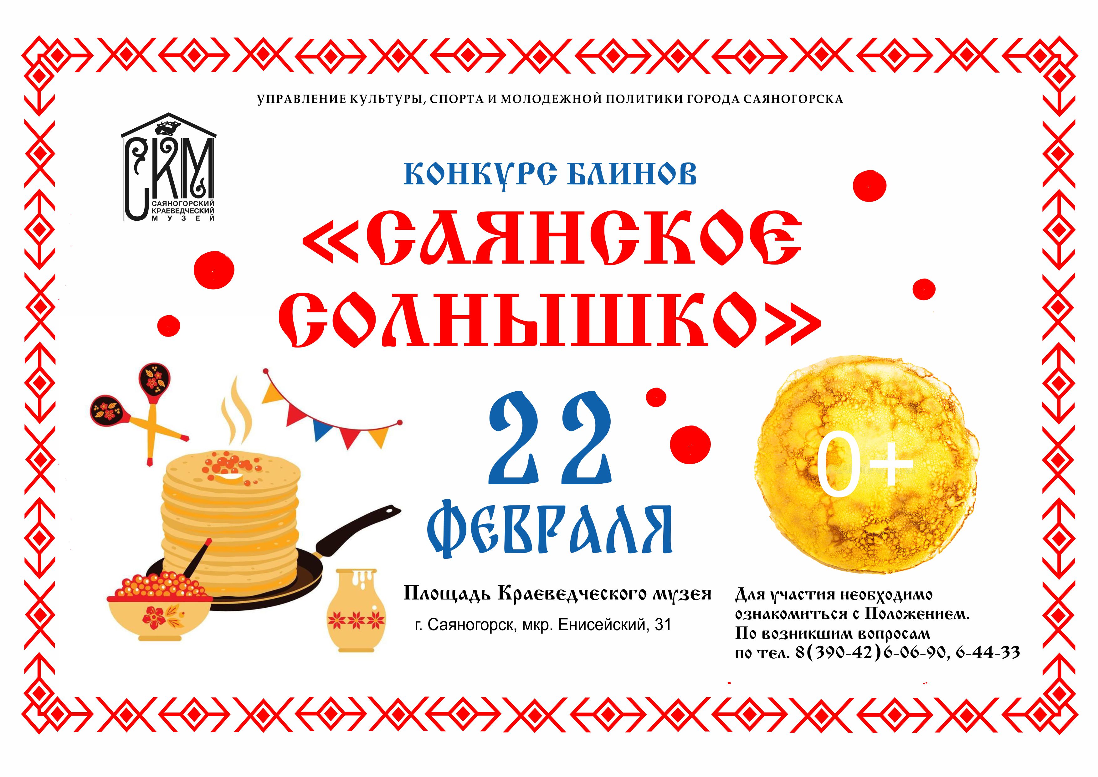 Городской конкурс блинов «Саянское солнышко», в рамках празднования «Народное гуляние «Масленица» 22 февраля с 12:00