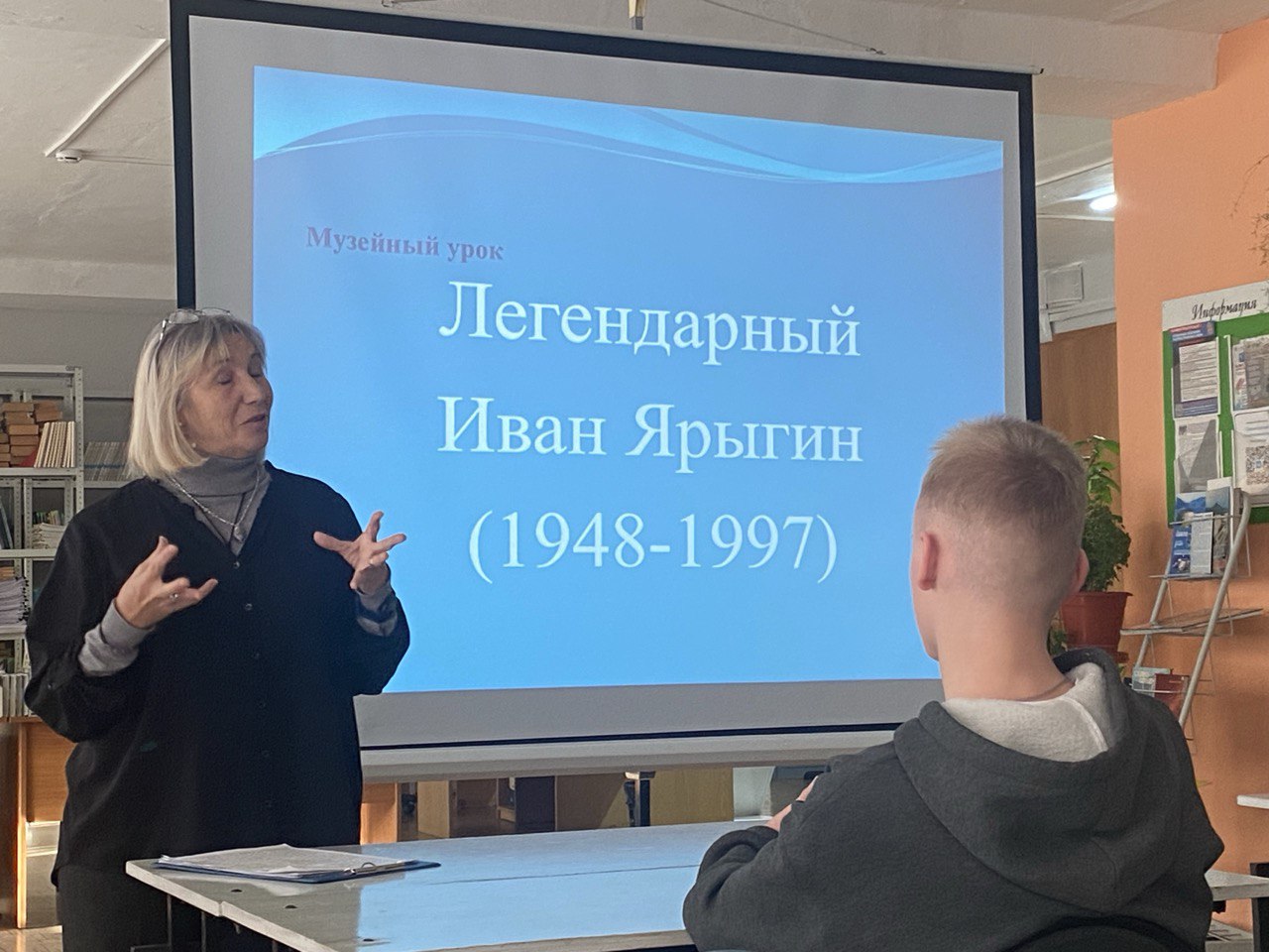 19 ноября сотрудник Краеведческого музея Магаровская Ольга Геннадиевна посетила Саяногорский политехнический техникум с музейным уроком "Легендарный Иван Ярыгиным". Ребята познакомились с жизненным путем двухкратного олимпийского чемпиона по вольной борьбе Иваном Сергеевичем Ярыгиным.