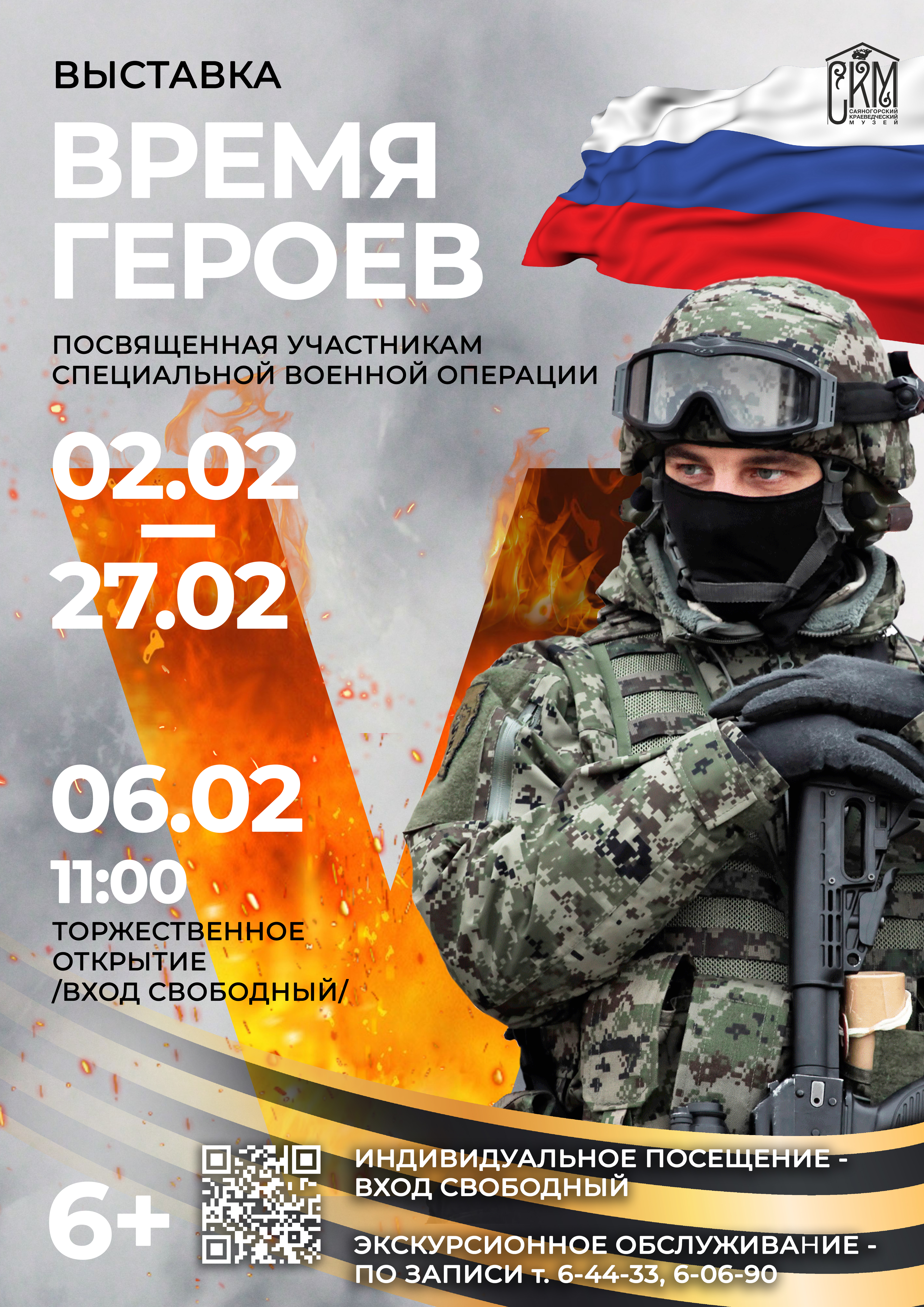 Рады сообщить о работе выставки "Время героев", посвященной участникам Специальной военной операции.