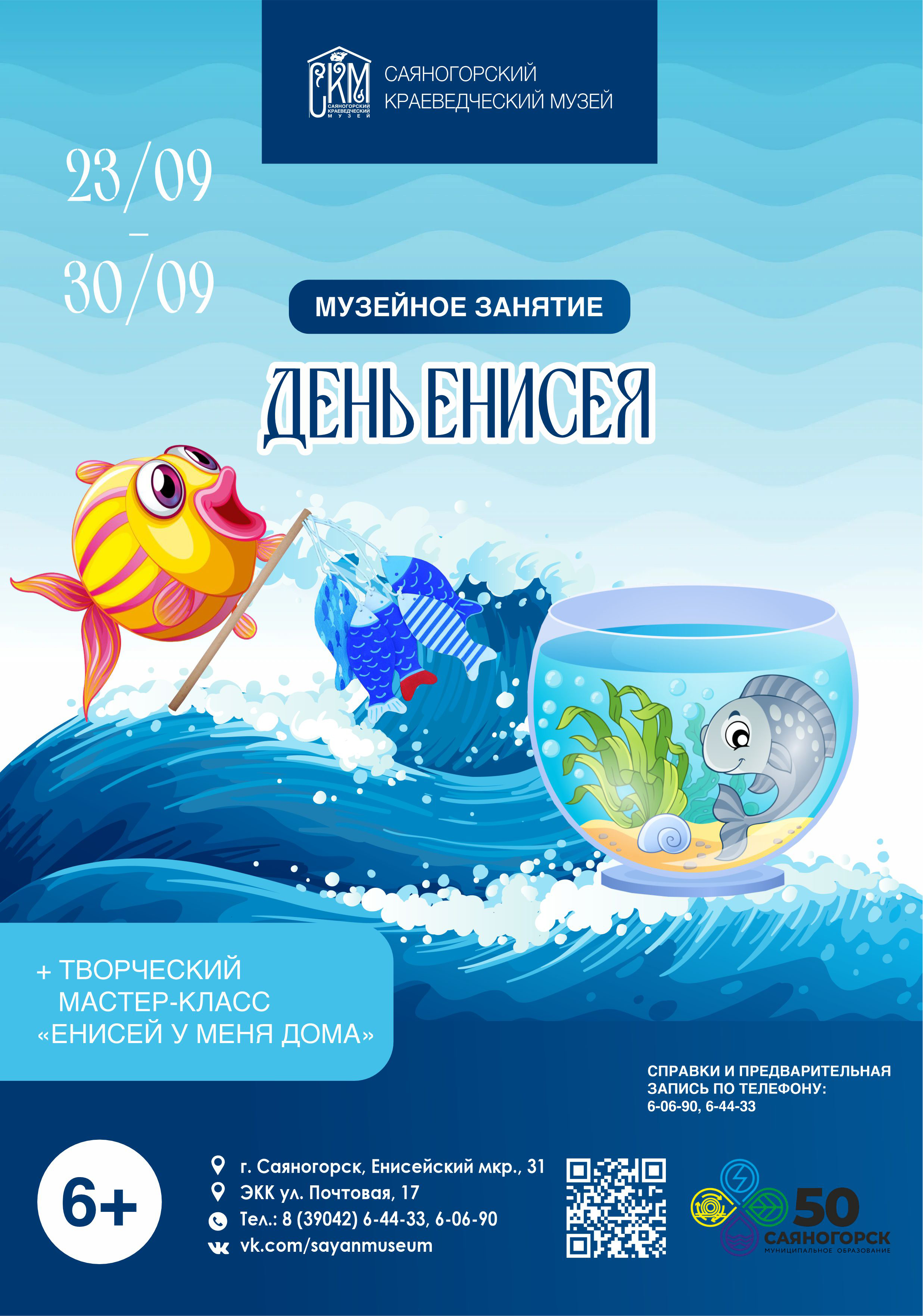 Дорогие друзья, приглашаем посетить наше музейное занятие с мастер-классом. На нем вы узнаете много интересного про реку Енисей, вместе с вами сотворим поделку. Все интересующие вас вопросы можно задать по телефонам: 6-06-90, 6-44-33 Занятие проводится по предварительной записи. Группы от 5 человек. | |