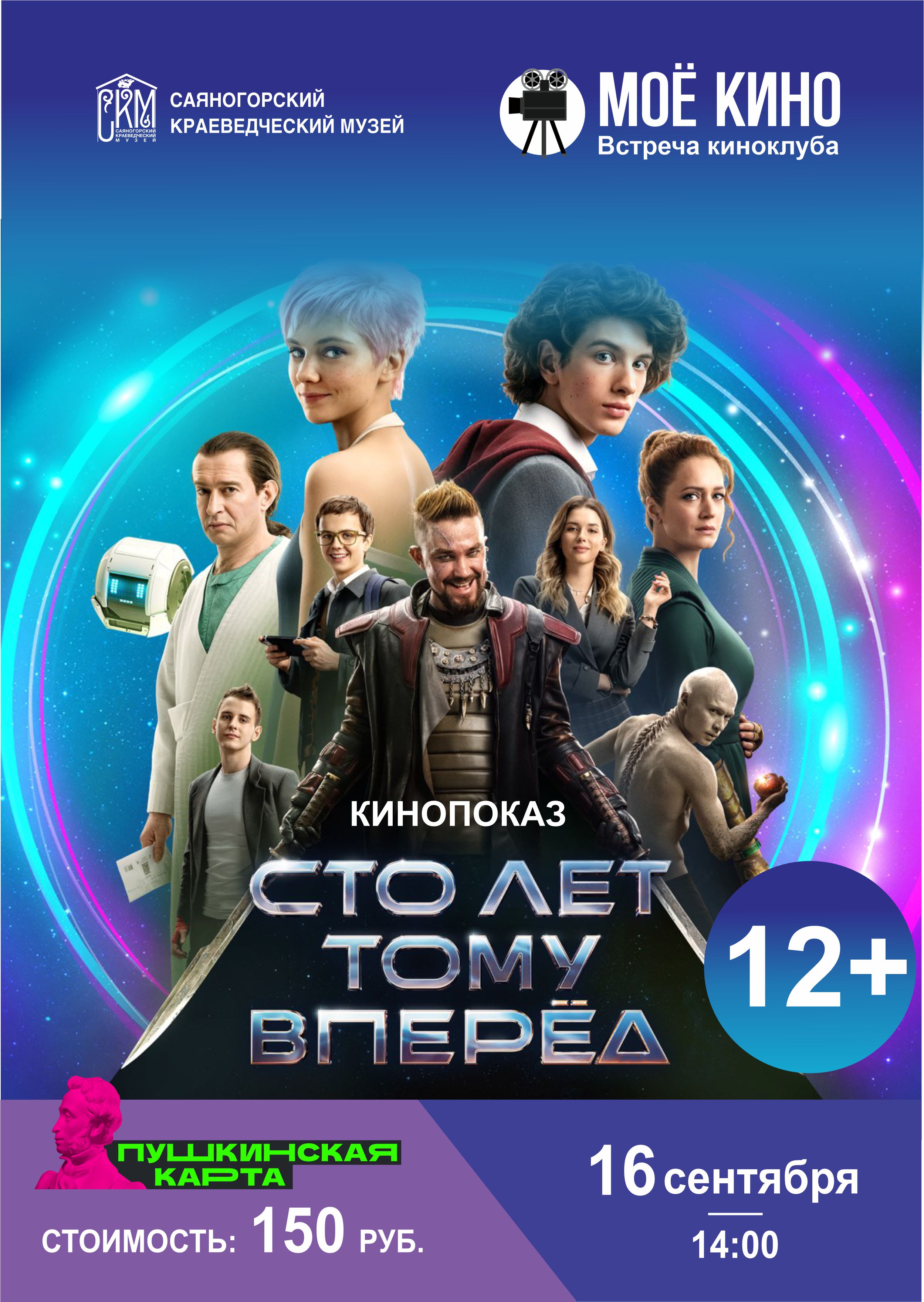 "Сто лет тому вперед" 2024 г. 12+ 2 ч. 22 мин. 16 сентября 14:00 Стоимость билета: 150 руб. Принимаем оплату по "Пушкинской карте" Они живут в разных мирах. Коля Герасимов — в Москве 2024 года, Алиса Селезнёва — на сто лет позже. Коля — обычный старшеклассник, ему нет дела до будущего. Алису не отпускает прошлое: она пытается найти маму, которая пропала, сражаясь с космическими пиратами. Встреча Алисы и Коли станет началом невероятных приключений. | |